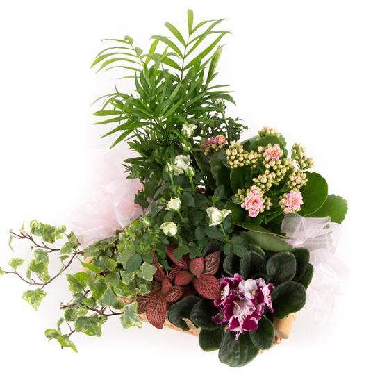 A long lasting gift of seasonal flowering and non-flowering plants presented in a tradtional basket.
